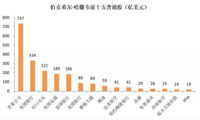 到2019年12月31日,伯克希尔·哈撒韦总计持有2480.27亿美元的普通股,其间前十五大普通股的市值为2098.68亿元,占全体普通股的比重近85%。