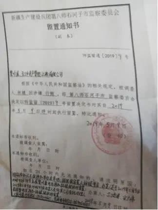 彦鑫供给的“留置通知书”显现,林辕曾因涉嫌受贿被留置。
