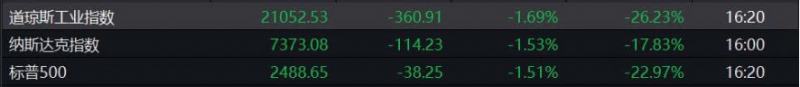 美东时刻周五,美股三大指数团体下挫,截止收盘,道指跌1.69%,纳指跌1.53%,标普500指数跌1.51%。本周标普500指数累跌2.08%,道指累跌2.70%,纳指累跌1.72%。