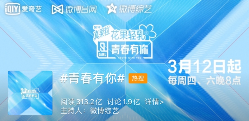 全网374个热搜、微博热搜霸榜80多个、接连两期爱奇艺站内热度破9000、节目主论题微博阅览量达313亿、论题评论量1.9亿。《芳华有你2》节目热度不断上涨的一起,被各种论题和评论声招引而来观看节目的“婧人”也渐渐变得多。