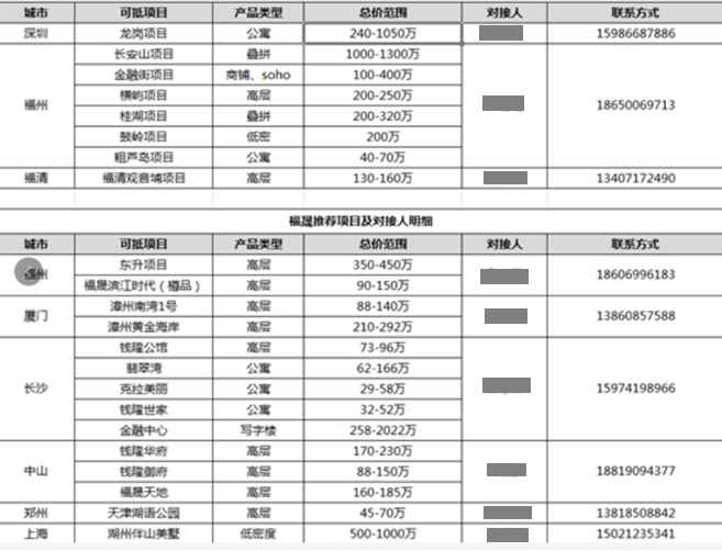 再如抵房计划的福晟漳州黄金海岸项目(现案名为云樾鹭海),2017年由福晟收买而来,2019年没有如期回收本金及利息,现在这个集资项目却成了抵购项目。该项目原先向职工以2万元/平米价格集资,许诺到期按3万/平米公司会回购。而现在公司给出的抵购房房源单价仅1.6万元/平方米。