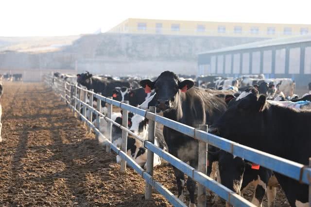2019年底,宁夏吴忠市一奶牛养殖场内正在晒太阳的牛群。《财经》记者 焦建/摄