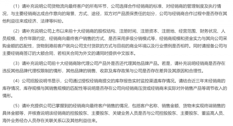 但深交所指出,部分经销商注册资本较小,且部分经销商建立当年或建立不久就成为公司首要客户,还有部分客户揭露材料显现前史上存在亏本景象等。一起,公司的各区域经销商存在销量与出售金额不匹配的景象。