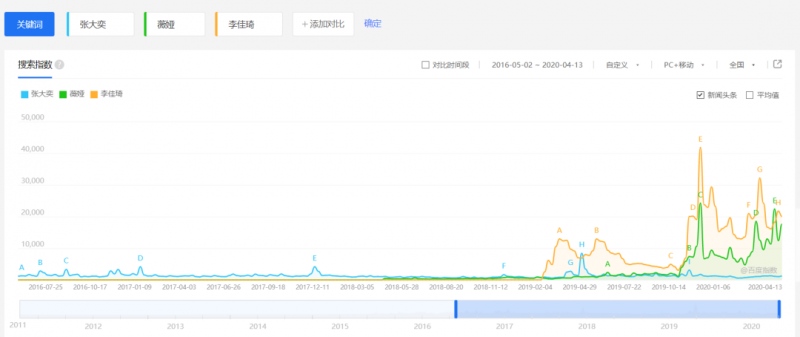 但是步入群雄入局的2019年,张大奕好像正在被忘记。百度指数显现,进入2019年后,李佳琦、薇娅作为新生代网红在流量吸引上敏捷逾越张大奕。