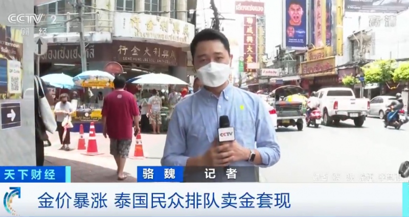 泰国曼谷的唐人街——耀华力路有许多金店,新冠肺炎疫情让曼谷的许多大街都十分冷清,可是由于金价上涨,这边的金店却反常火爆,许多民众一早就过来排队,他们想要趁着这一拨行情出售黄金套现。