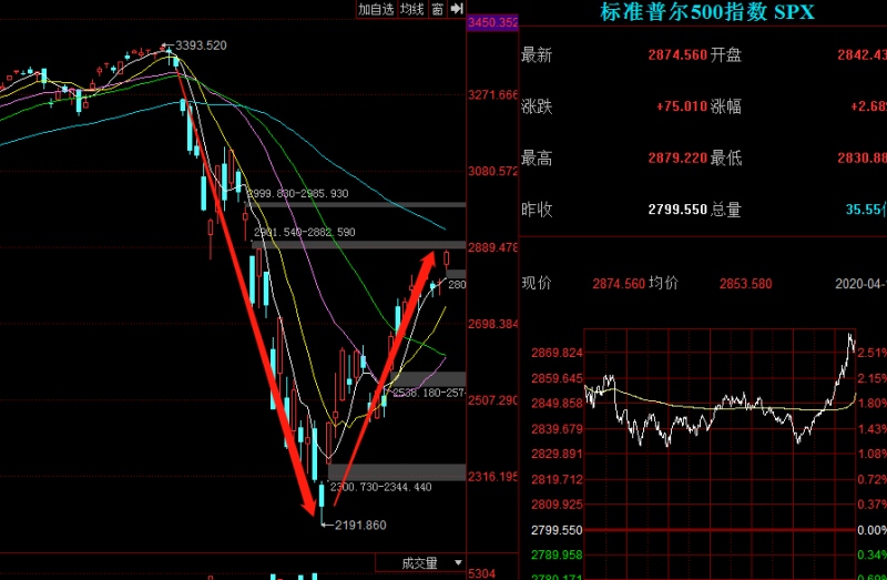 从一个月前的2200低点截止到现在,美国标普500指数现已反弹了超30%,离二月份的前史至高点3500点仅差15%