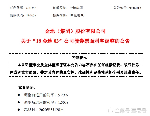 4月21日,金地(集团)股份有限公司发布关于“18 金地 03”公司债券票面利率调整的布告。