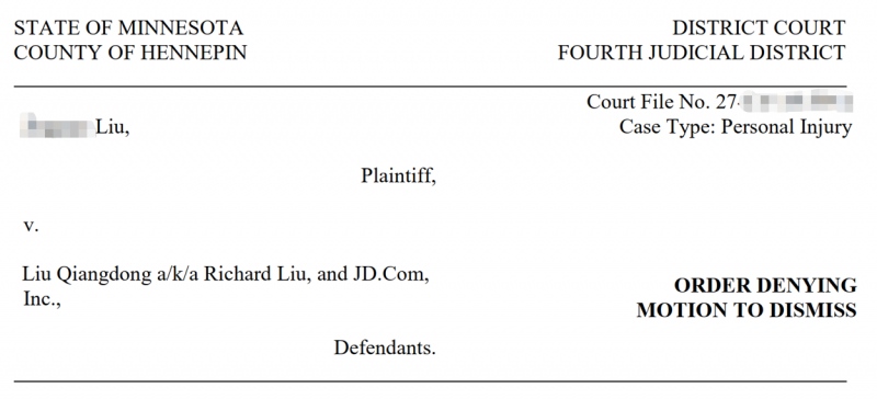 (原标题:刘强东案最新进展!京东称是其个人行为,要求撇清连带责任,遭美法院驳回)