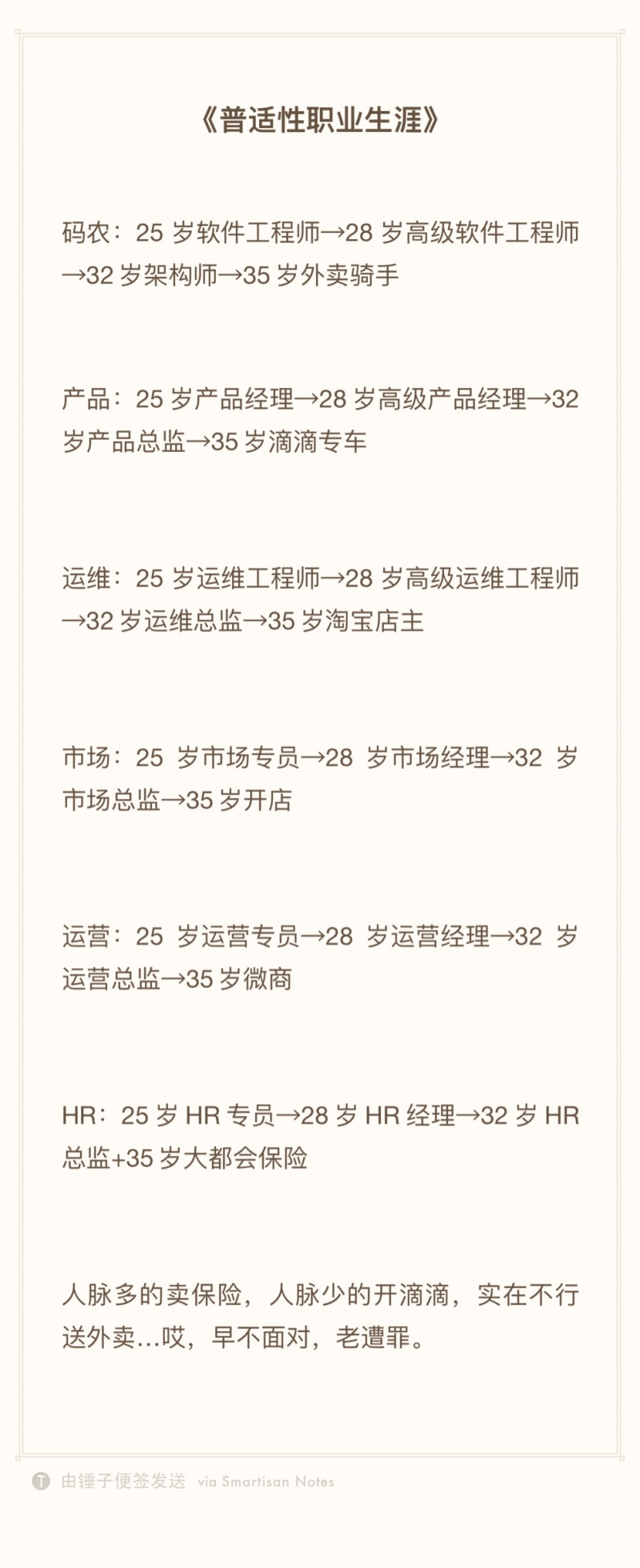 前几天有一个截图被大家广泛传播,标题是“普适性职业生涯”,内容如下: