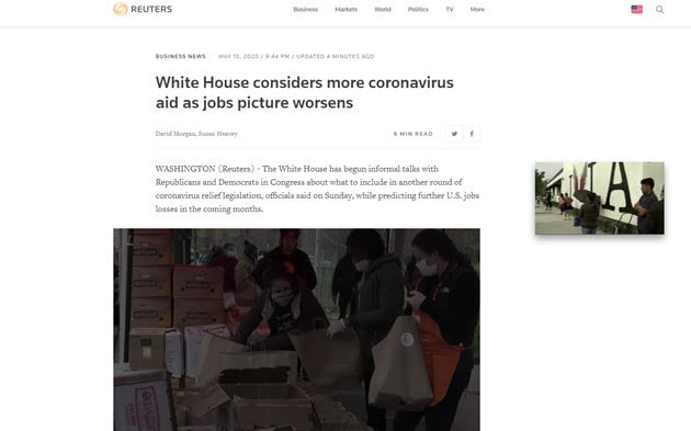 路透社头条| 就业形势恶化,白宫考虑提供更多新冠病毒救助