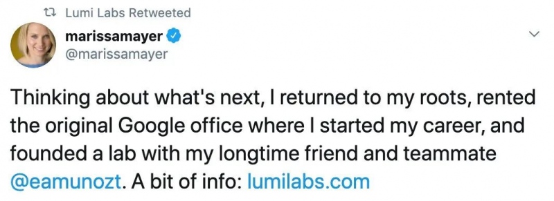 或许你没有听说过 Lumi Labs,但你必定知道它背面的创始人——谷歌的第 20 号职工、前yahoo CEO,玛丽莎·梅耶尔(Marissa Mayer)。