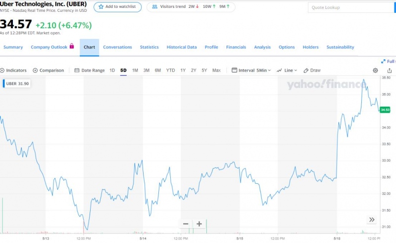 从商场反应看,出资者对Uber的减少本钱和事务重心调整决议计划表明欢迎。周一当天,Uber股价高开高走,早盘一度迫临35.70美元,创本年2月26日以来盘中新高,日内涨幅将近10%,尽管尔后股价回落到35美元下方,仍有望创2月下旬或是3月初以来收盘新高。