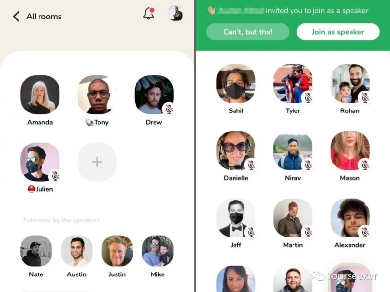 另外,如果 Clubhouse 基于用户的 Twitter 个人资料和关注者列表来拓展,可能会走得更快些。