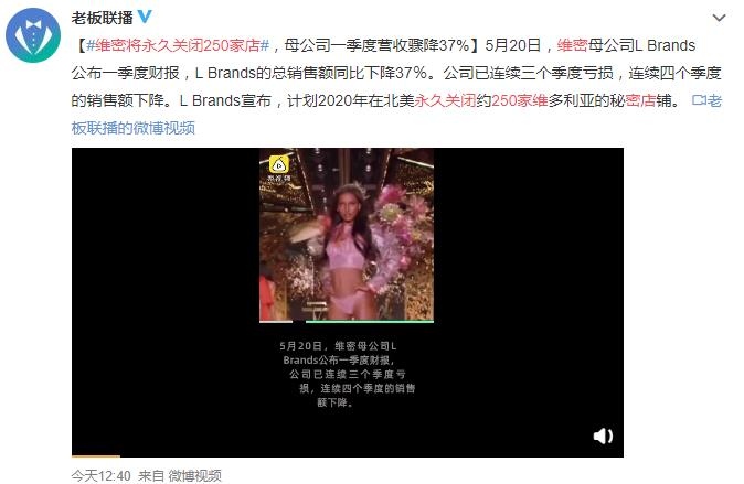 5月20日,维密母公司L Brands发布一季度财报,L Brands的总销售额同比下降37%。公司已接连三个季度亏本,接连四个季度的销售额下降。L Brands宣告,方案2020年在北美永久封闭约250家维多利亚的隐秘店肆。