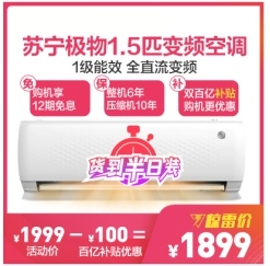 例如,购买苏宁极物1.5匹一级变频挂机1899元,使用苏宁支付选择指定银行信用卡分期,可享12期免息,每天仅需5元多。购华凌空调大1.5匹一级能效空调2499元,使用苏宁支付选择指定银行信用卡分期,享24期免息,每天不到4元即可拥有。购科龙(KELON) 3匹新1级能效变频空调5299元,使用苏宁支付选择指定银行信用卡24期免息后,每天仅需7元多。