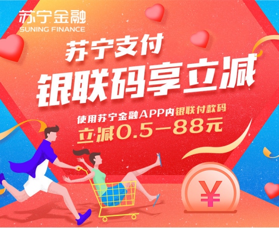 苏宁618不仅是线上电商购物狂欢,餐饮、商超等线下门店活动也同样精彩。继支付风暴日、家电风暴日之后,苏宁支付又与银联云闪付合作,推出用苏宁金融APP银联付款码购物最高立减88元活动,覆盖更多线下购物场景,让您的618获得更加便捷、普惠的支付体验。