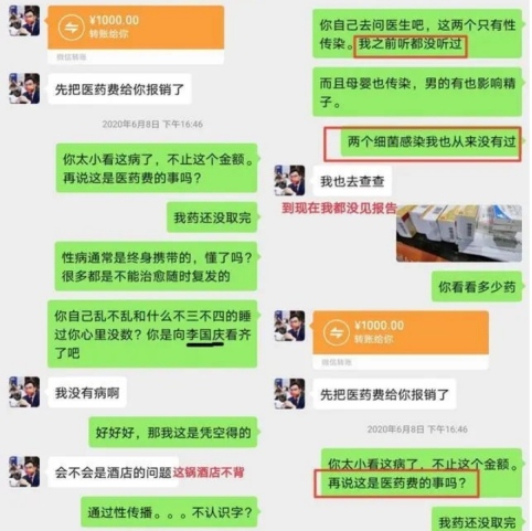 这姑娘怒发聊天记录的原因是,饶谨让她染上了难以启齿的疾病,附上了各类病例单据。