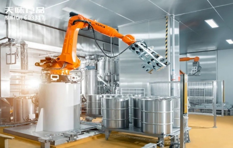 在智能配料、转运、投料系统中,天味智慧工厂是行业内首家由成套机器人完成自动配料、运输、投料的工厂,其中投料采用机器视觉辅助技术,这也是该技术在行业内的首次应用。