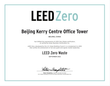 北京嘉里中心在绿色低碳建设,可持续社区运营等方面表现卓越,已经获得WELL健康安全及核心铂金级认证、LEED零废弃物认证、LEED铂金级再认证、Reset认证等多项行业荣誉。